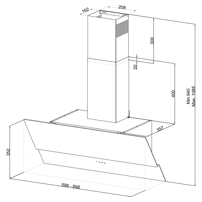 Caractéristiques de la Hotte Décorative Design FOCUS GALAXY 90 cm