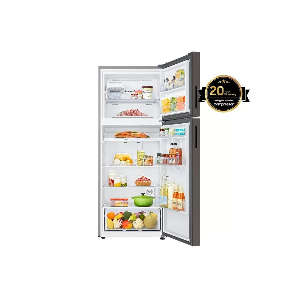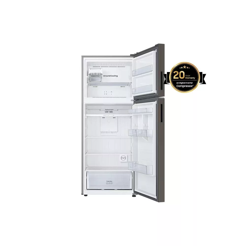 Réfrigérateur SAMSUNG – 2 Portes – Système de refroidissement: NoFrost – Volume Net: 415 Litres – Volume Net Du Réfrigérateur: 317 Litres – Volume Net Du Congélateur: 98 Litres – Classe Énergétique: A+++ – Eclairage intérieur LED – Wifi intégré – Refroidissement intégral – Digital Inverter Compressor – Multi-flux – Etagères en verre trempé – Zone fraiche optimale – Machine à glaçons torsadée – Filtre frais actif – Dimension: H x L x P : 178.5 x 70 x 67.2 cm – Couleur: Cotta charbon – Garantie: 2 ans