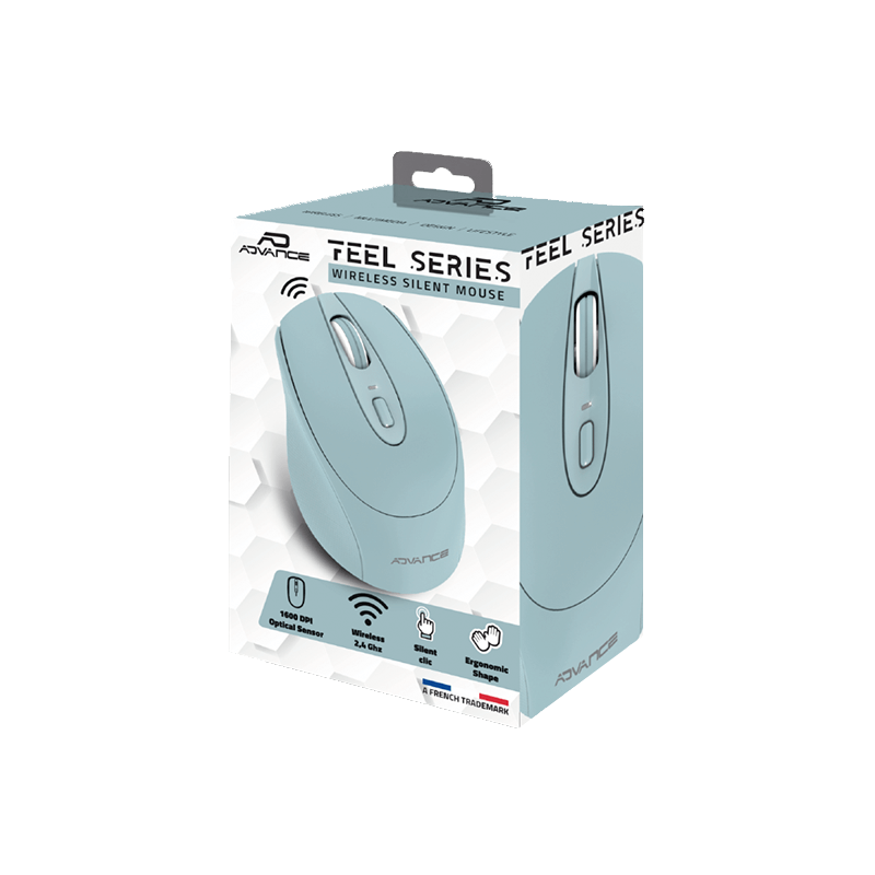 Souris ADVANCE Feel – Connectivité: Sans Fil – Résolution: 800/1200/1600 DPI – Fréquence: 2.4 GHz – Nombre de boutons: 3 Boutons et une molette de défilement silencieuse – Distance de fonctionnement: 10 mètres – Design ambidextre avec prise en main confortable – Fonctionne avec 2 pile AA – Compatible PC et Mac – Dimensions: 105 x 69 x 38 mm – Poids: 59 g – Couleur: Bleu – Garantie: 1 an