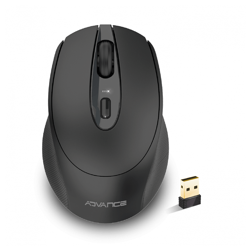 Souris ADVANCE Feel – Connectivité: Sans Fil – Résolution: 800/1200/1600 DPI – Fréquence: 2.4 GHz – Nombre de boutons: 3 Boutons et une molette de défilement silencieuse – Distance de fonctionnement: 10 mètres – Design ambidextre avec prise en main confortable – Fonctionne avec 2 pile AA – Compatible PC et Mac – Dimensions: 105 x 69 x 38 mm – Poids: 59 g – Couleur: Noir – Garantie: 1 an