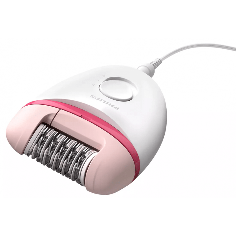 Épilateur compact sur secteur Philips BRE235/00 Satinelle Essential – Pour jambes et zones sensibles – 2 réglages de vitesse pour retirer les poils les plus fins comme les plus épais – Forme ergonomique pour une prise en main facile – Tête d’épilation lavable pour plus d’hygiène et un nettoyage facile – Accessoire spécial zones sensibles pour éliminer les poils indésirables- Couleur: Blanc/Rose – Garantie 2 ans