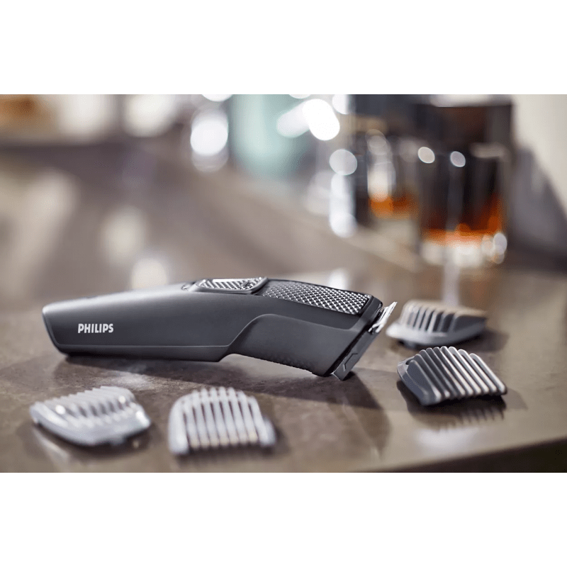 Tondeuse à barbe Philips Beardtrimmer series 1000 BT1214/15 – Lames en inox – 60 min d’autonomie pour 8 h de charge – Rechargeable via USB – 4 sabots barbe/barbe de 3 jours – hauteurs de barbe de 1, 3, 5, 7 mm – ystème de verrouillage pour les transports évite une mise en marche accidentelle de la tondeuse – Tête amovible facilitant le nettoyage – Garantie 1 an