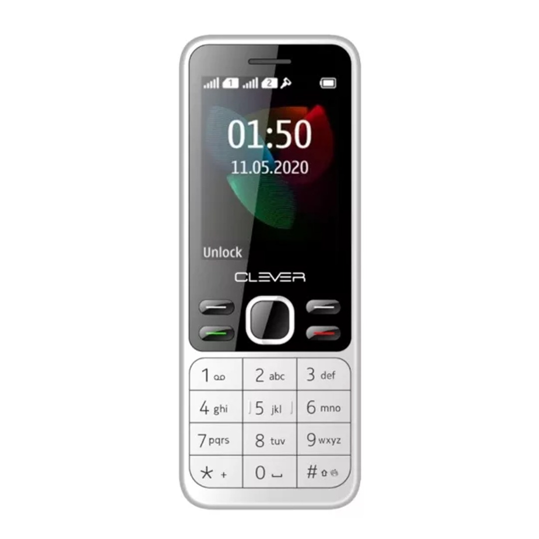 TÉLÉPHONE PORTABLE CLEVER C24 : Double Sim – Taille De L’Ecran : 2 .4″ Résolution 240*320 QVGA – Capacité de la batterie: 1000mAH– Mémoire: 32 Mo – Stockage 32 Mo Extensible 16Gb -caméra VGA Connectivités : 2G -Bluetooth V2.1 –Radio Fm sans fil – Alarme – Lecteur carte mémoire – Couleur: Blanc .