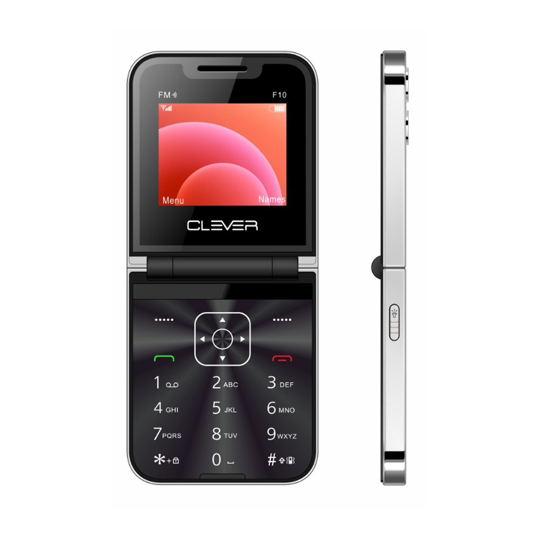 TELEPHONE PORTABLE CLEVER F10 : Double Sim-Taille De L’Ecran : 2.4″ Résolution 240*320 QVGA -Téléphone clapet– Capacité de la batterie: 1350 mAH- Mémoire: 32 Mo – Stockage 32 Mo Extensible 32Gb caméra VGA – Connectivités : 2G – Bluetooth V2.1 –Radio Fm sans fil – Alarme – Lecteur vidéo 3GP, MP4, AVI, etc – Lecteur carte mémoire- Dimension :152*67.2*9.6 mm Couleur :Blanc – garantie 1 an.