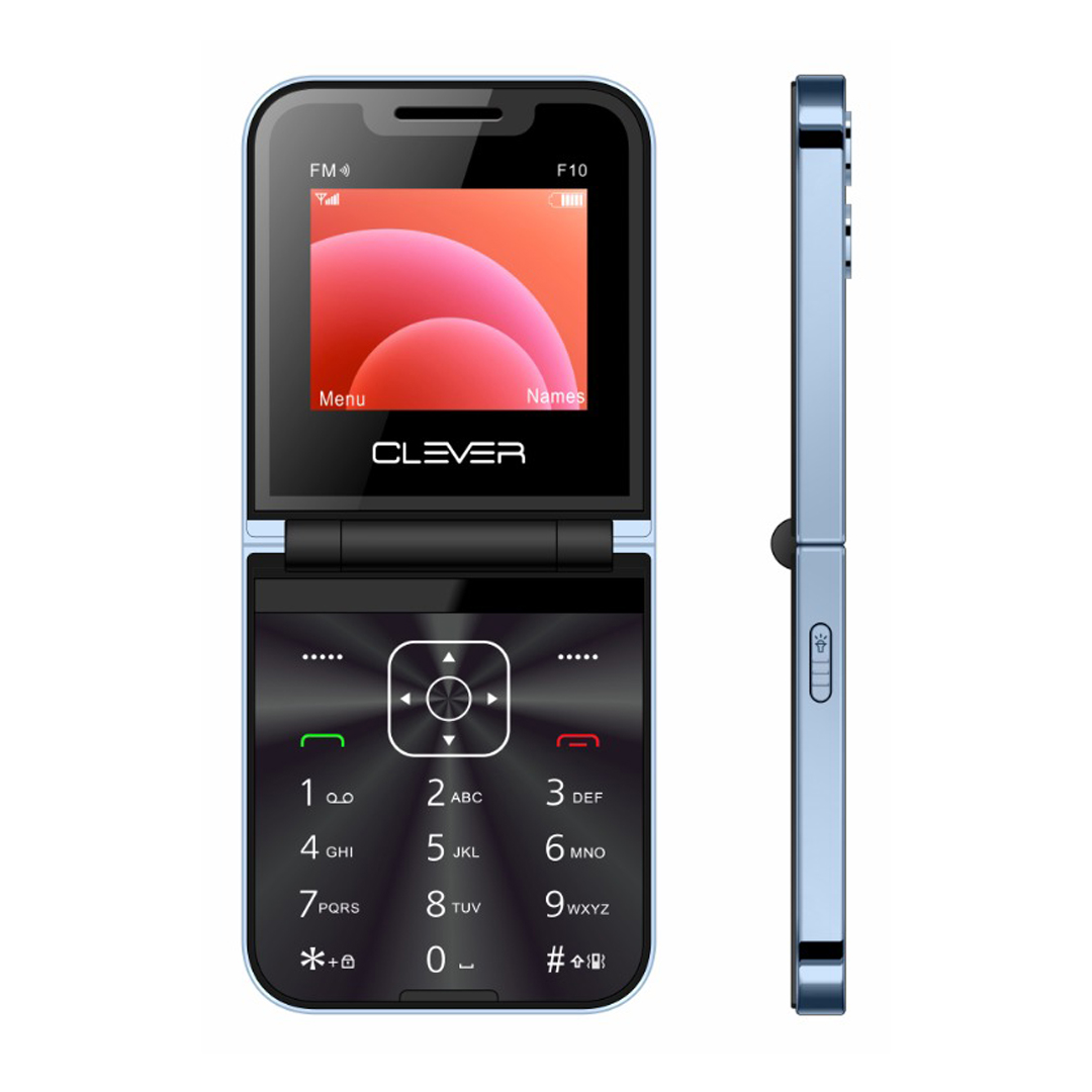 TELEPHONE PORTABLE CLEVER F10 : Double Sim-Taille De L’Ecran : 2.4″ Résolution 240*320 QVGA -Téléphone clapet– Capacité de la batterie: 1350 mAH- Mémoire: 32 Mo – Stockage 32 Mo Extensible 32Gb caméra VGA – Connectivités : 2G – Bluetooth V2.1 –Radio Fm sans fil – Alarme – Lecteur vidéo 3GP, MP4, AVI, etc – Lecteur carte mémoire- Dimension :152*67.2*9.6 mm Couleur :Bleu – garantie 1 an.