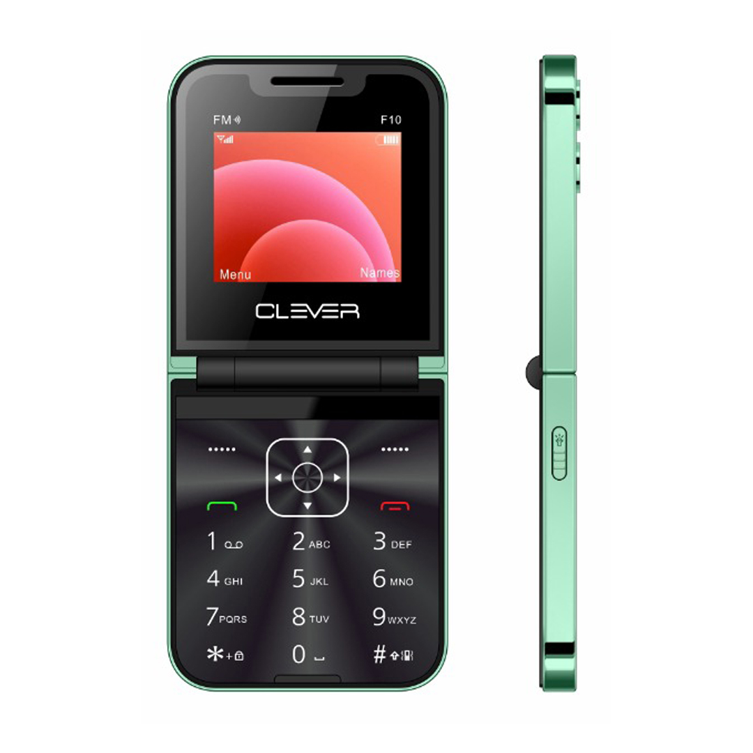 TELEPHONE PORTABLE CLEVER F10 : Double Sim-Taille De L’Ecran : 2.4″ Résolution 240*320 QVGA -Téléphone clapet– Capacité de la batterie: 1350 mAH- Mémoire: 32 Mo – Stockage 32 Mo Extensible 32Gb caméra VGA – Connectivités : 2G – Bluetooth V2.1 –Radio Fm sans fil – Alarme – Lecteur vidéo 3GP, MP4, AVI, etc – Lecteur carte mémoire- Dimension :152*67.2*9.6 mm Couleur :Vert – garantie 1 an.